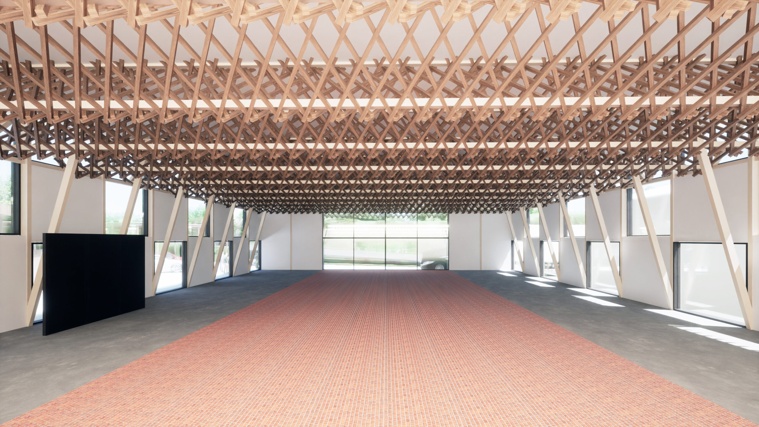 出来るだけ一般流通材を利用した、スパン約20mの大空間を構想している。